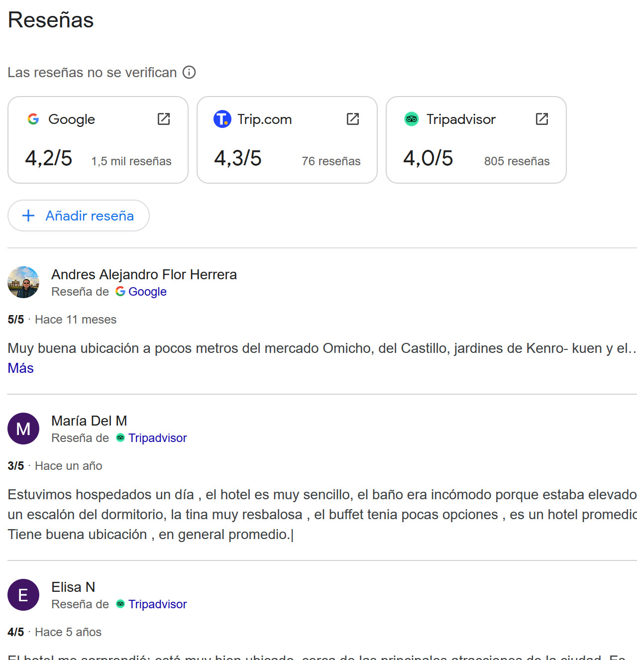 Te dejamos aquí también una captura de pantalla de las reseñas del hotel , realizado el 25/marzo/2025.