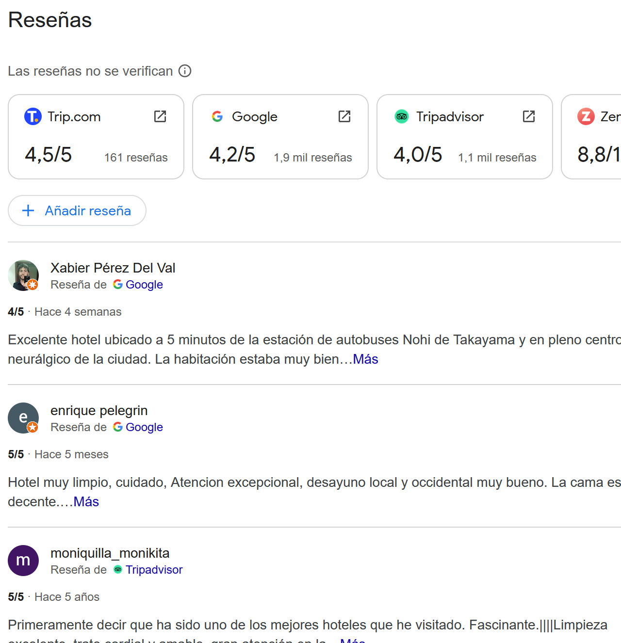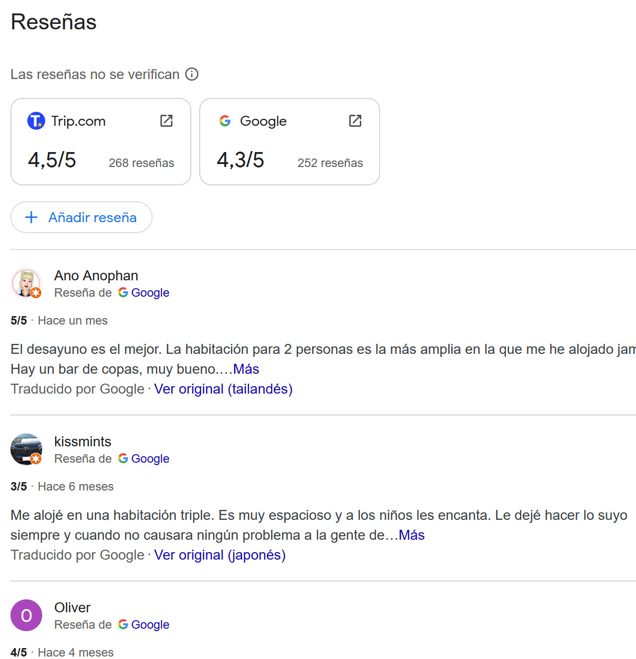 Te dejamos aquí también una captura de pantalla de las reseñas del hotel , realizado el 25/marzo/2025.